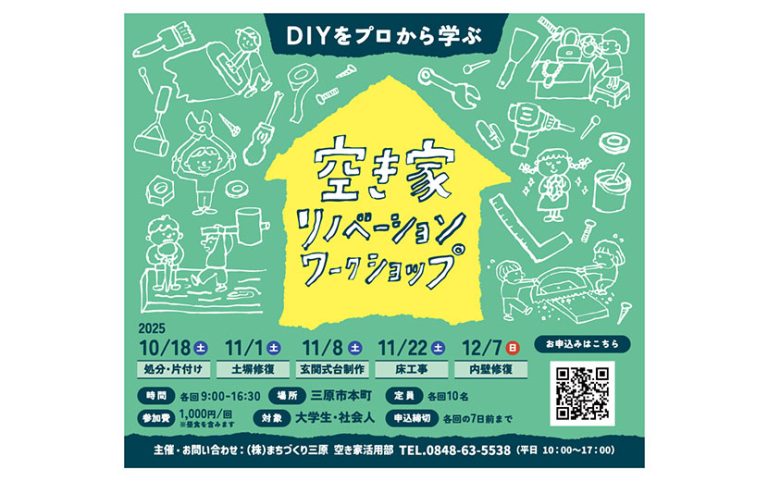 DIYをプロから学ぶ、空き家リノベーションワークショップ10月18日(土)〜開催|株式会社まちづくり三原