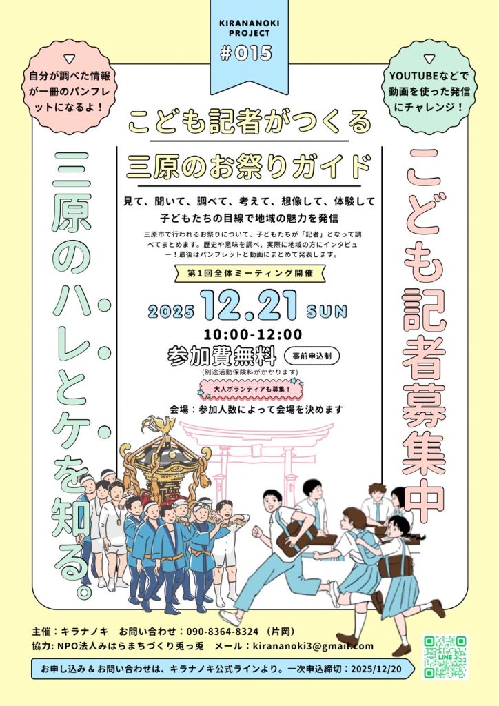 三原市で行われる地域のお祭りについて、子どもたちが記者となって調べてまとめます。