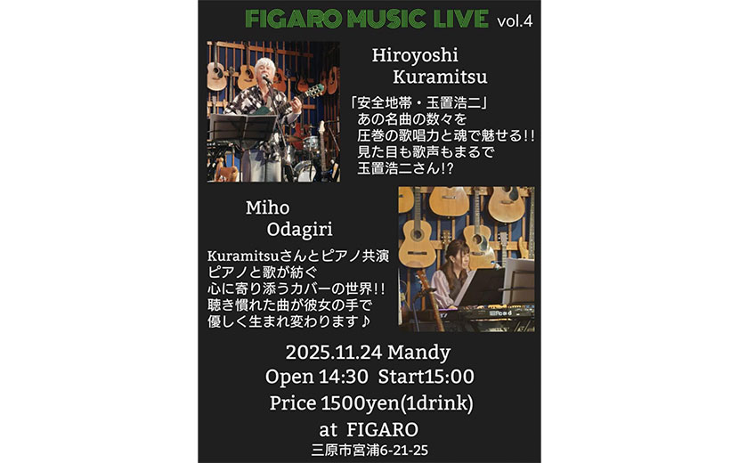 FIGARO MUSIC LIVEが2025年11月24日(月・祝)開催 |FIGARO(三原市宮浦)