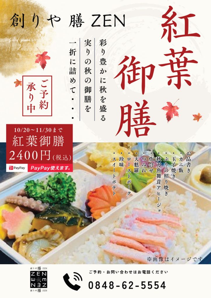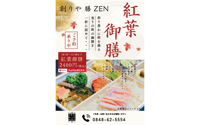 彩り豊かに秋を盛る『紅葉御膳』の予約を受付中!2025年10月20日(月)~11月30日(日)|創りや膳(三原市港町)