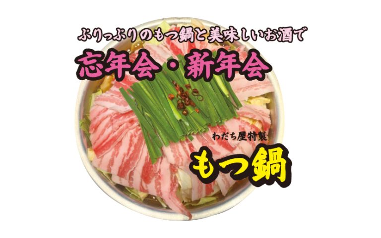 ぷりっぷりのもつ鍋と美味しいお酒で忘年会・新年会を|わだち屋(三原市港町)