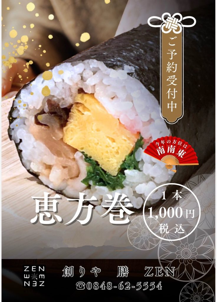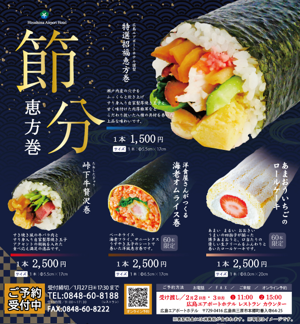 三原市内の飲食店やホテルでも、オリジナルの恵方巻が続々と予約開始されています♪