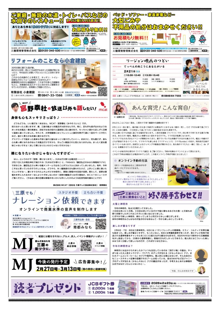 情報紙MJ(みはら情報局)の2026年2月13日号を発行しました。