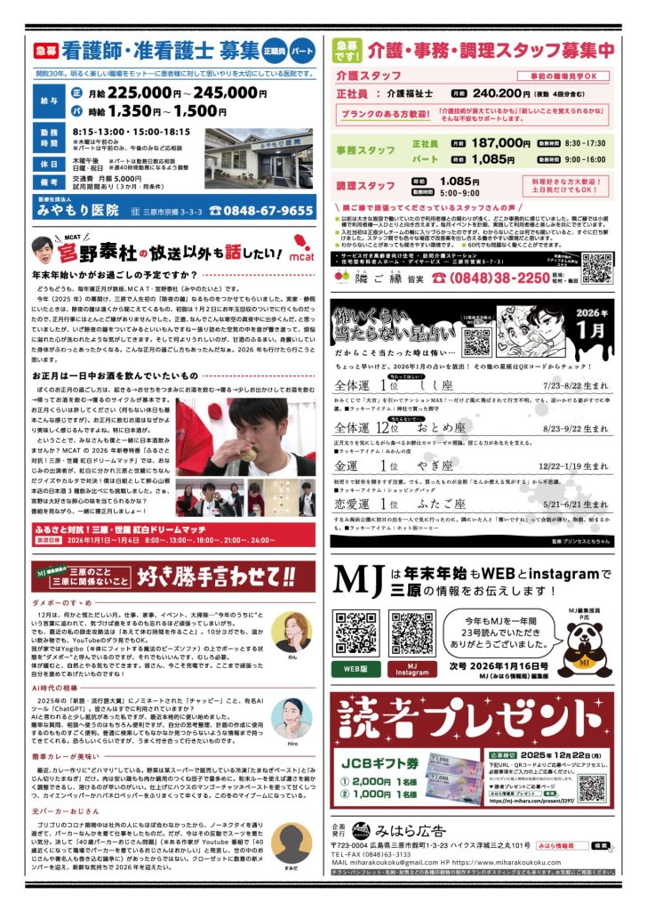 情報紙MJ(みはら情報局)の2025年12月12日号を発行しました。